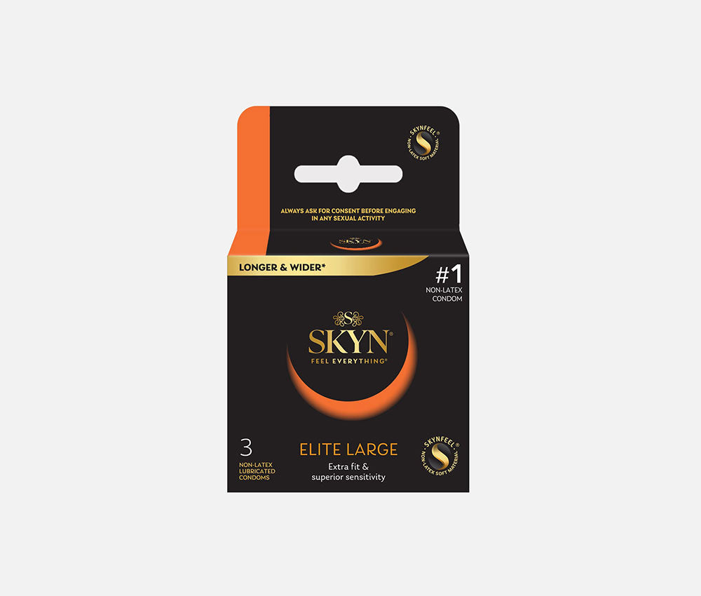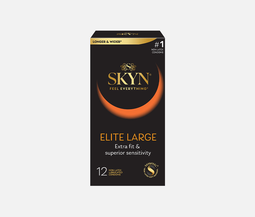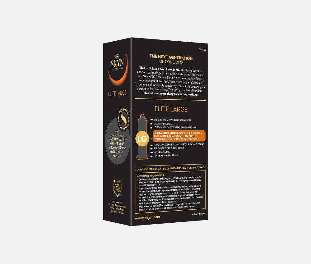 • SKYN® Elite Large condoms are longer and wider than our regular Elite condoms for an exceptionally sensitive and sensual feeling as well as enhanced comfort.