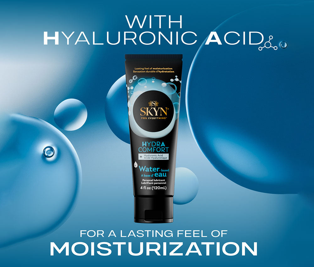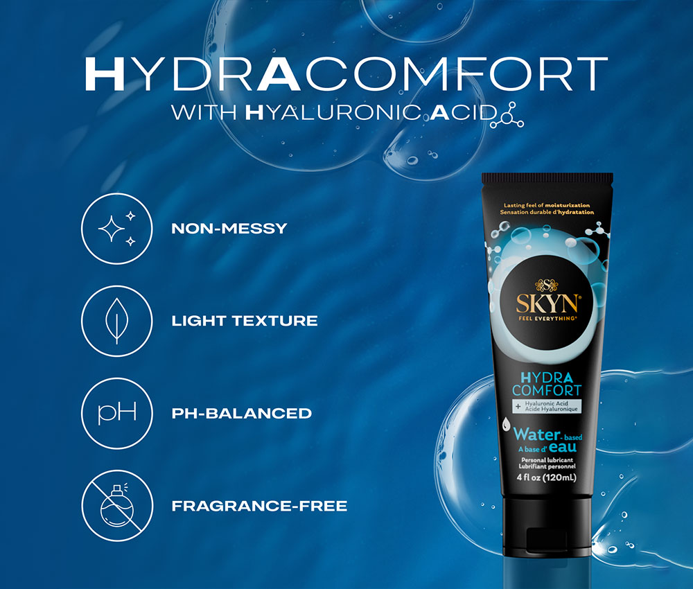 - For a lasting feel of moisturization: HydrAcomfort is a premium, water-based lubricant that provides gentle moisturization with Hyaluronic Acid